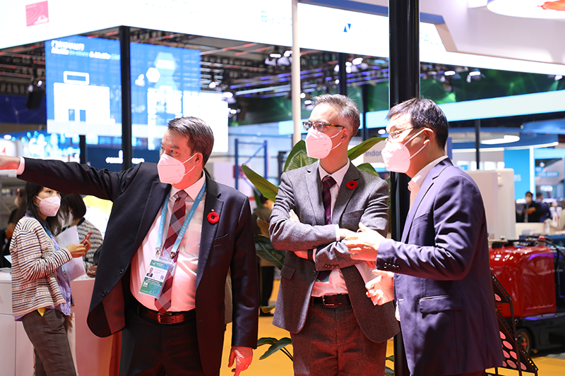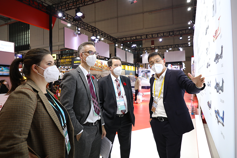 11月6日,加拿大駐上??傤I(lǐng)事Dave Murphy和副總領(lǐng)事Alexandre Cerat一行到訪(fǎng)進(jìn)博會(huì )萬(wàn)豐鉆石飛機展臺參觀(guān),萬(wàn)豐航空團隊陪同參觀(guān)。