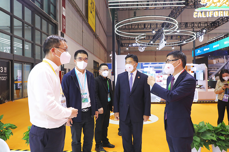 11月6日,商務(wù)部黨組成員、副部長(cháng)盛秋平,商務(wù)部服貿司司長(cháng)、進(jìn)博會(huì )組委會(huì )秘書(shū)處副秘書(shū)長(cháng)王東堂參觀(guān)進(jìn)博會(huì )萬(wàn)豐鉆石飛機展位,新昌縣副縣長(cháng)李江陪同參觀(guān)。
